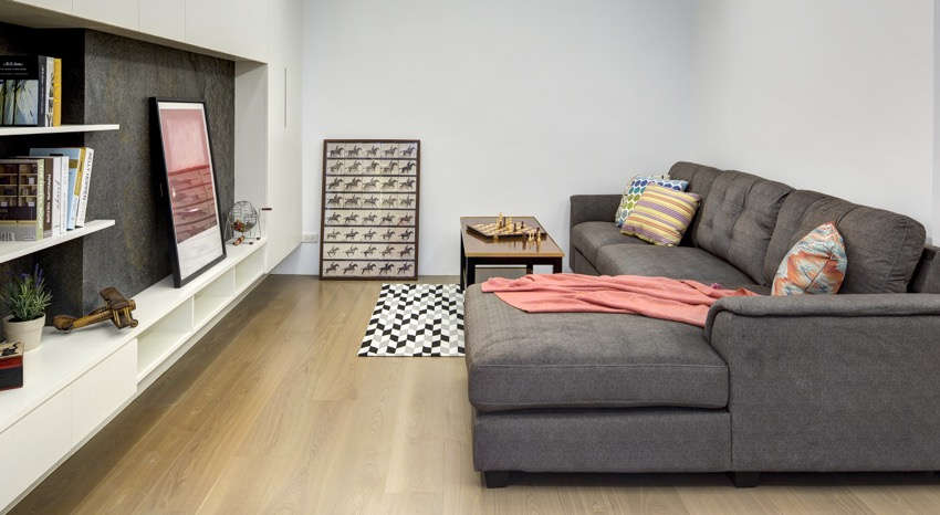 越來(lái)越多屋主喜歡自由選擇家具,不愛(ài)采買(mǎi)成套配置,深怕空間也會(huì)如同制服一樣陷入制式風(fēng)格,如果沒(méi)有太多家具挑選經(jīng)驗(yàn),設(shè)計(jì)師在這傳授基本不敗法則,盡量從同色系選擇開(kāi)始。舉例來(lái)說(shuō)家中以沈穩(wěn)灰色系為主,裝修時(shí)主墻利用灰色油漆涂刷,客廳空間最大型的家具「沙發(fā)」,也同樣挑選帶有灰色的組合,平衡視覺(jué)協(xié)調(diào)度。