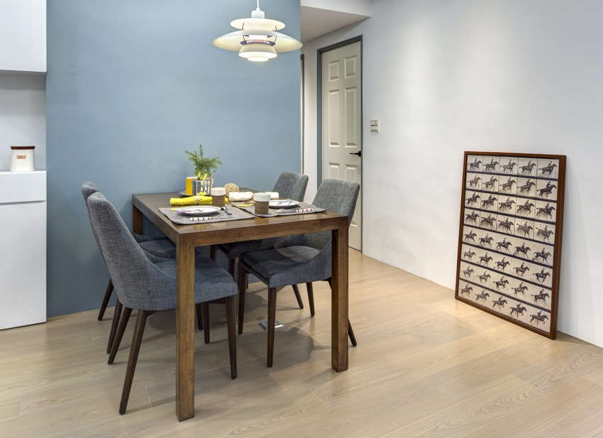 小家庭格局選擇開(kāi)放式空間規(guī)劃,單純希望增加更多使用面積,放大視覺(jué)感受,特別是有小朋友家庭,總想著媽媽在廚房料理同時(shí)能注意孩子動(dòng)向,設(shè)計(jì)師表示只需加入長(zhǎng)型實(shí)木餐桌、舒適布面餐椅擺放,便能「多全其美」。不再只有擺放美味佳肴,享受全家人聊天團(tuán)聚歡樂(lè)的功能,跟隨使用需求,變成孩子閱讀、游戲書(shū)桌、小夫妻夜半私密聊天場(chǎng)地(記得放些質(zhì)感餐盤(pán)、餐具營(yíng)造高級(jí)餐廳氛圍)、工作計(jì)算機(jī)桌等,一物多用的高 CP 值實(shí)質(zhì)機(jī)能,充分滿(mǎn)足生活享受,這可是固定裝修無(wú)法達(dá)到的效果喔!至于溫暖混搭風(fēng)格定位,透過(guò)一盞設(shè)計(jì)燈飾,加上灰色感色彩墻面便搞定,百搭的強(qiáng)烈包容性,象是圣誕節(jié)、跨年或是過(guò)年要放布置品,完全毫無(wú)違和感。