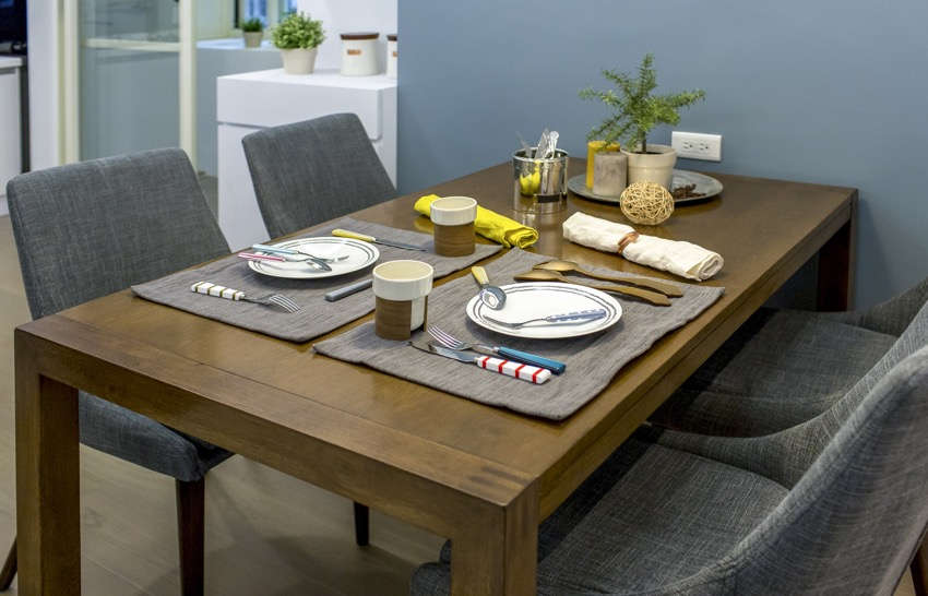 簡(jiǎn)約純粹實(shí)木餐桌、簡(jiǎn)約摩登木餐椅、餐具