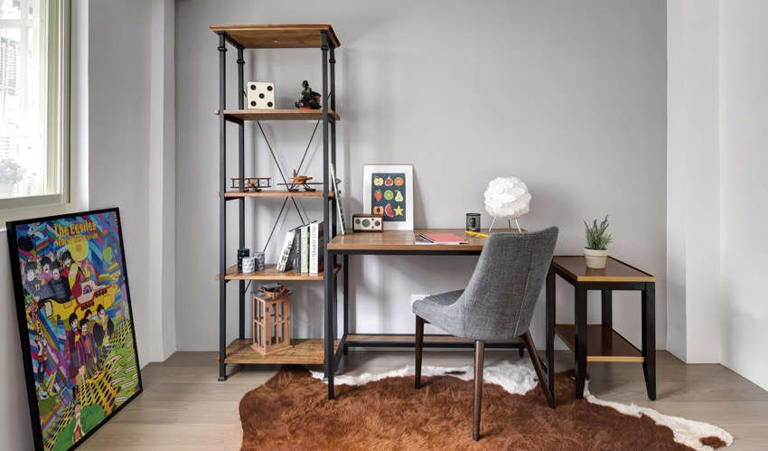 這幾年很流行的工業(yè)風(fēng)元素,也能單單依靠家具擺飾悄悄融入混搭風(fēng)空間嗎?根據(jù)設(shè)計(jì)師經(jīng)驗(yàn)法則,沒(méi)有磚墻、水泥等主視覺(jué)壁面規(guī)劃,降低空間制式侷限,相對(duì)而言靈活彈性調(diào)配自由度才更高。以書(shū)房空間為例,隨性選個(gè)窗邊角落,利用鐵件結(jié)合木頭的書(shū)架、書(shū)桌、邊桌等主要家具,擺上創(chuàng)意畫(huà)作、大地色、動(dòng)物紋地毯,寒冬里的溫暖系工業(yè)風(fēng)輕松完成。過(guò)沒(méi)幾個(gè)月想變動(dòng)房間配置方式,只要再把臥室原木收納橫柜,甚至將陽(yáng)臺(tái)穿鞋椅搬過(guò)來(lái),重新組合又是另一種生活景象,就像小時(shí)候玩樂(lè)高一樣,家具也能自由配出新火花。