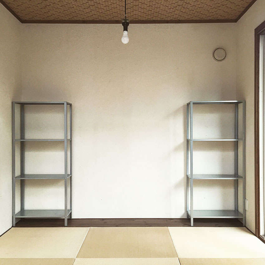 STEP 1 首先將 2 座開放式層架放于左右兩側(cè),并于層架間留出空間。若左右側(cè)皆有墻壁,則將層架個別倚靠。