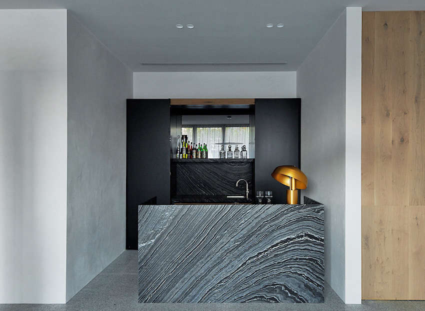地面鋪設(shè)灰階花崗巖地磚,再擺上幾組木質(zhì)調(diào)家具,讓天然材質(zhì)襯托光影,為冷調(diào)空間注入一股舒適柔和氣息。