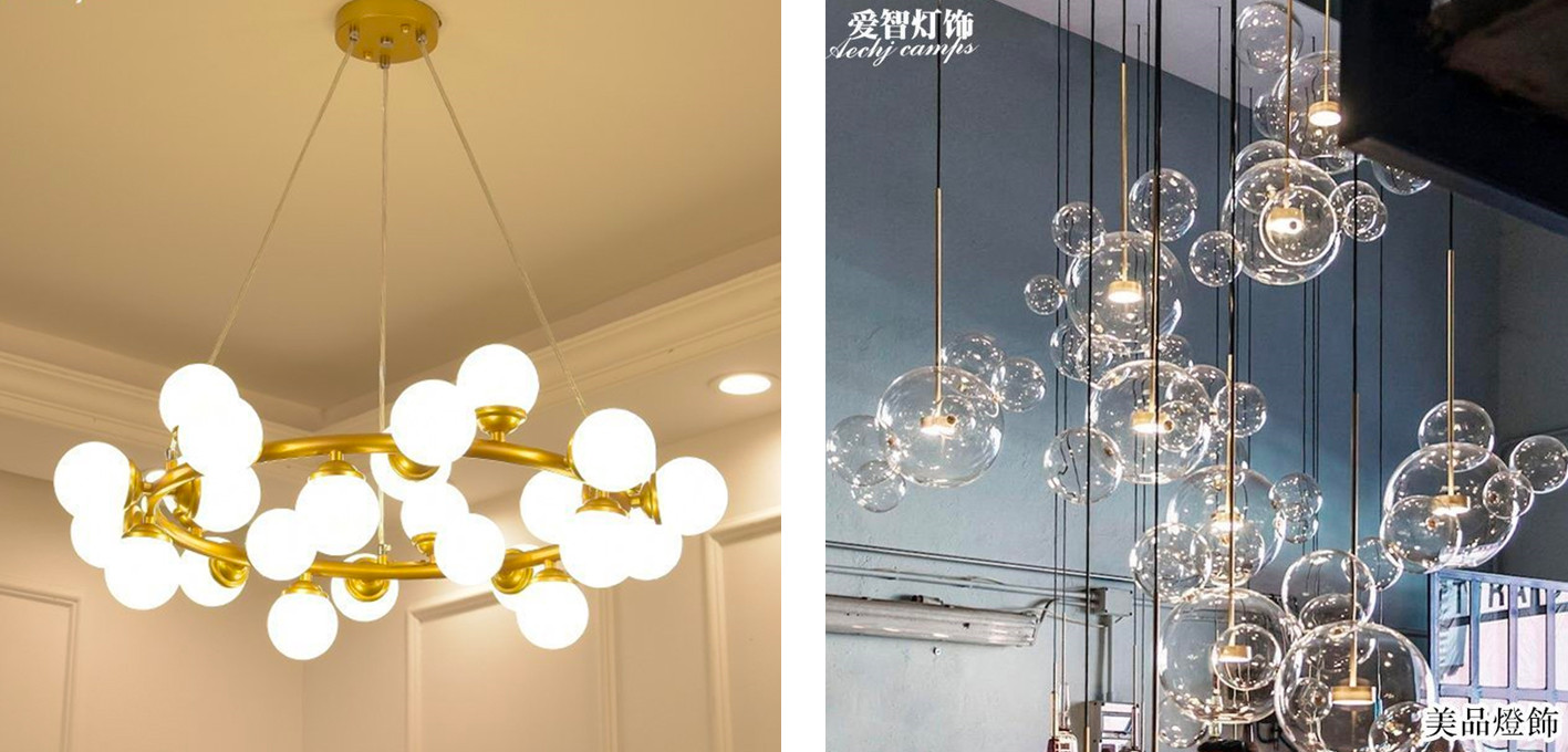 另外受到紐約設(shè)計師 Lindsey Adelman 設(shè)計的分子燈啟發(fā),以透明玻璃球為元素的延伸款式受到市場歡迎,為現(xiàn)代空間加入一點精品質(zhì)感。