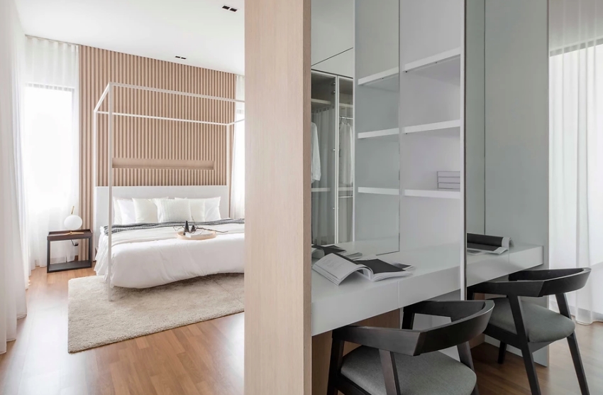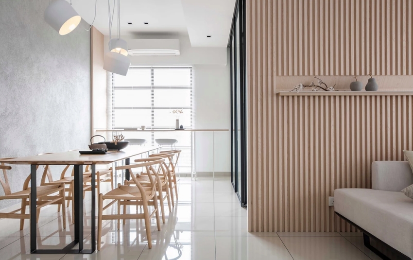 兼具立體與線條感的木格柵,在新加坡室內(nèi)設(shè)計(jì)事務(wù)所 Pins Studio 巧手串連之下,為居所帶來既柔雅且利落的多變調(diào)性,經(jīng)由團(tuán)隊(duì)精心拿捏現(xiàn)代、日式元素比例。