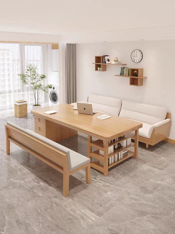 小戶型通常沒有額外的書房,因此可以在去客廳化設計后,將背景墻打造成開放式書架。這樣,書架既可以滿足大人的辦公和學習需求,也能應對客人拜訪。甚至可以在書架上方隱藏投影儀,滿足日常的娛樂需求。