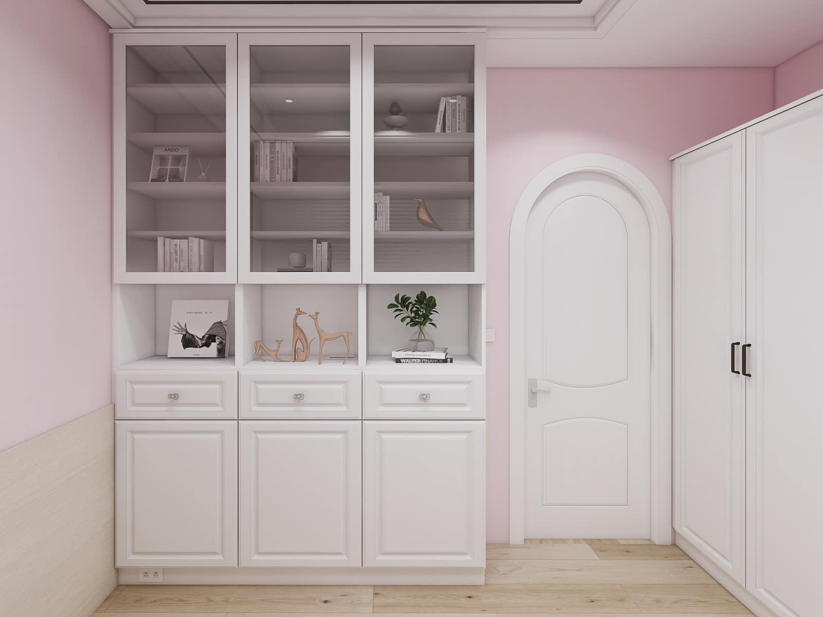 鄉(xiāng)村風門板造型細致,搭配Hello Kitty粉紅色,蝴蝶結(jié)把手。