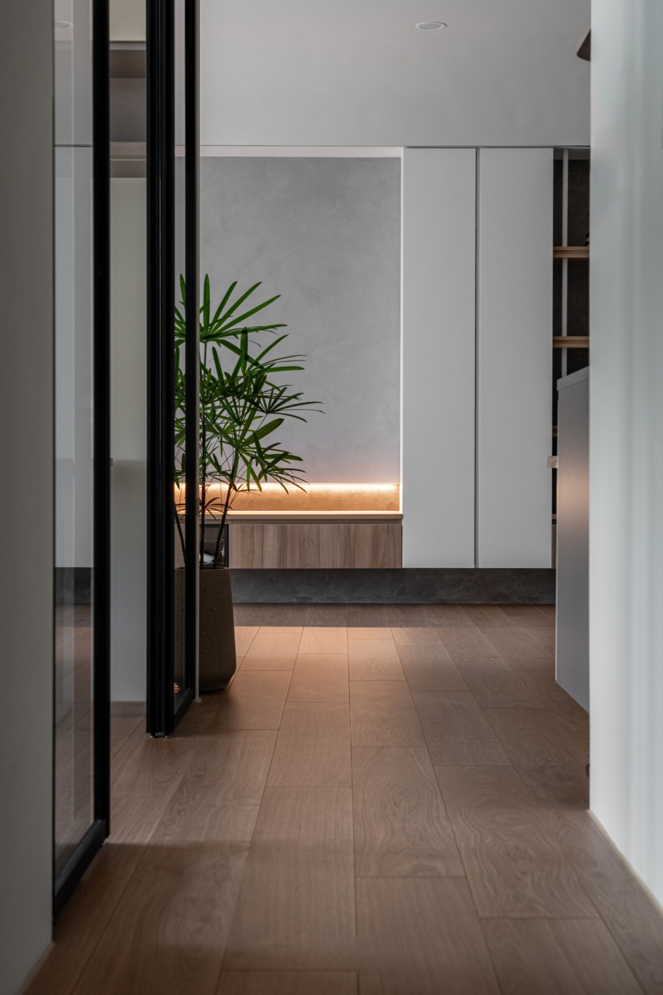 這是一座日式北歐風(fēng)格的寧靜之宅,擁有淡雅的白色、羊毛灰和深沉的巧克力色調(diào)。