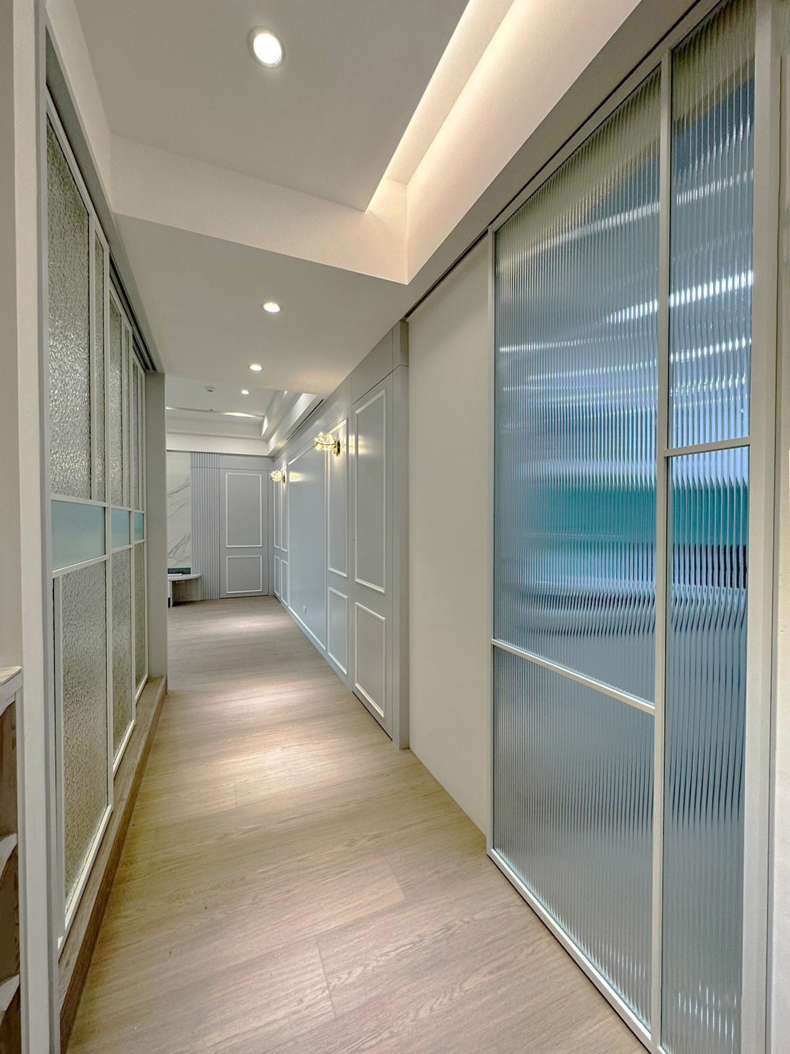 綜合起來,玻璃磚、壓花玻璃和長虹玻璃的融合運用,不僅在視覺上呈現(xiàn)出多樣的效果,更在實用性和藝術性上達到了一種完美的平衡。這樣的設計不僅提升了室內空間的層次感和美感,同時也為居住者創(chuàng)造了一個既舒適又富有品味的居住環(huán)境。