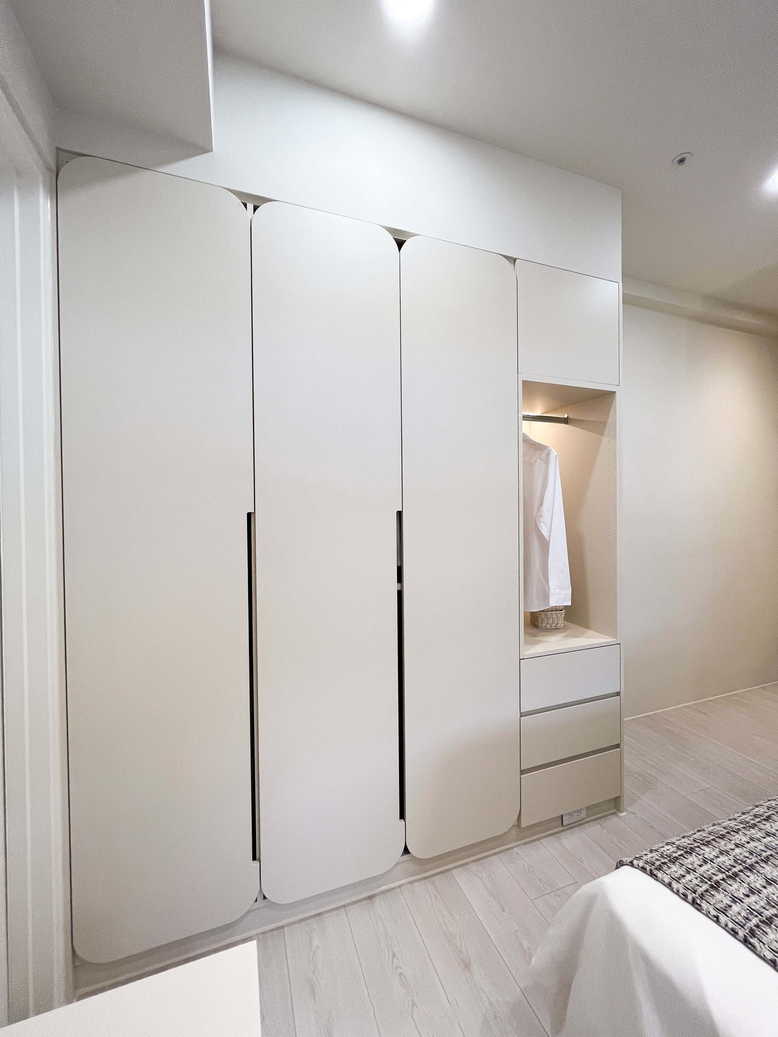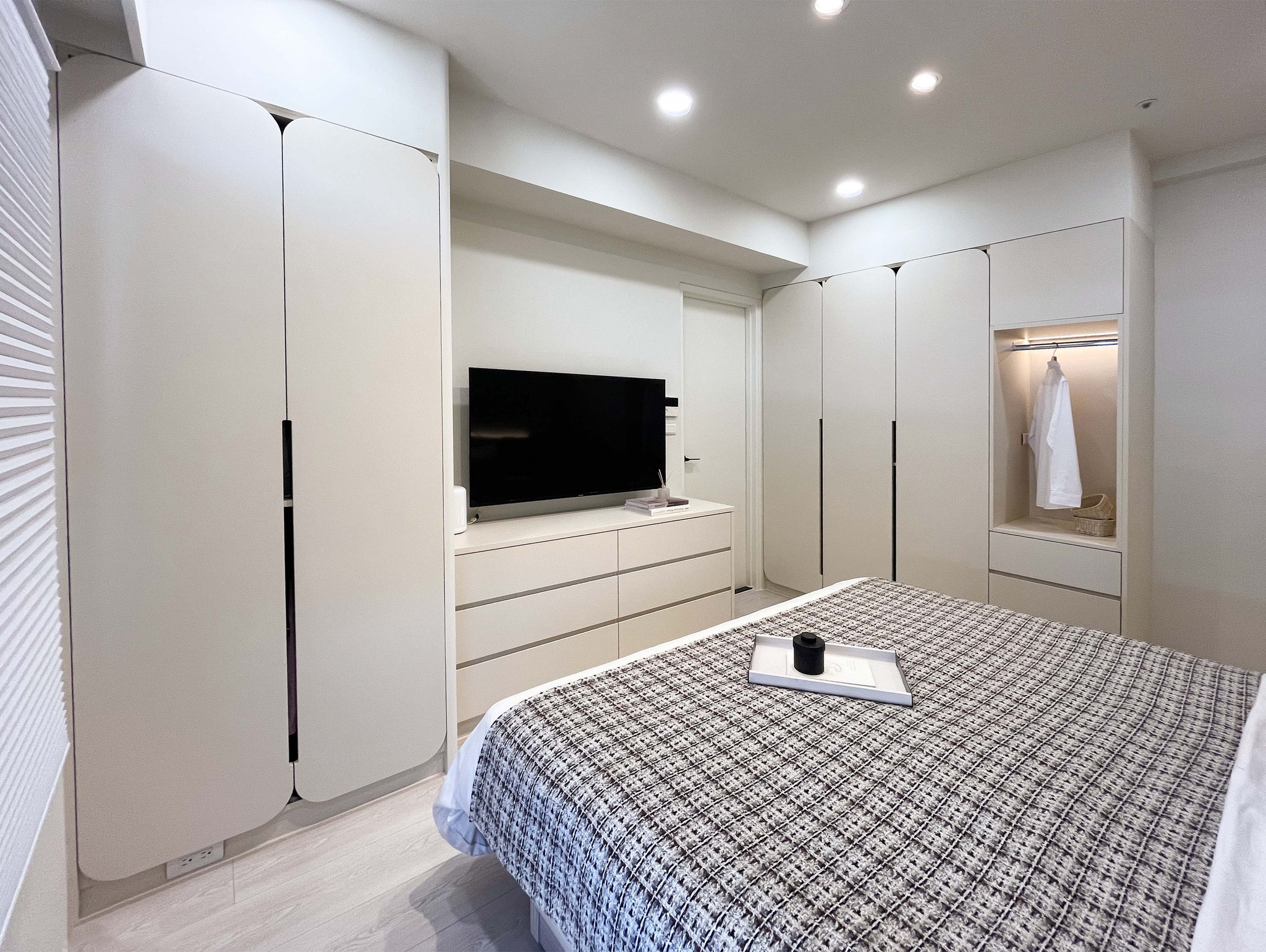 室內(nèi)的設(shè)計(jì)注重極簡(jiǎn)風(fēng)格,通過大型衣柜和活動(dòng)式風(fēng)琴窗簾的巧妙搭配,既提高了收納空間的利用率,同時(shí)也為臥室注入了一份時(shí)尚與舒適的氛圍。