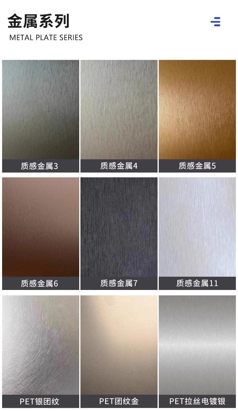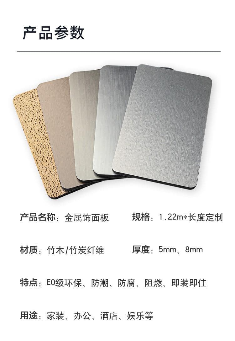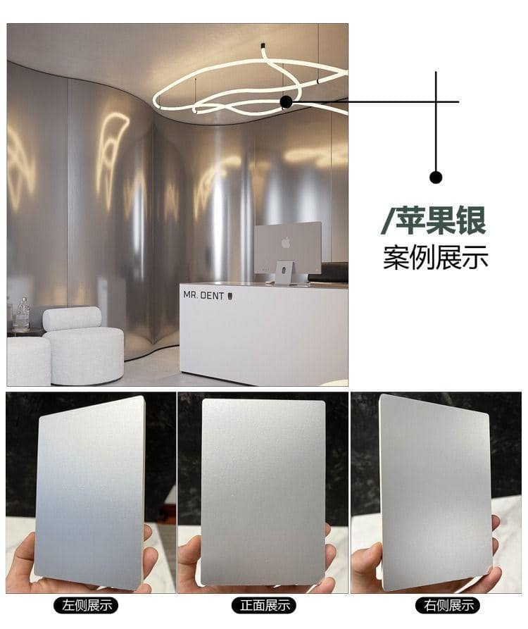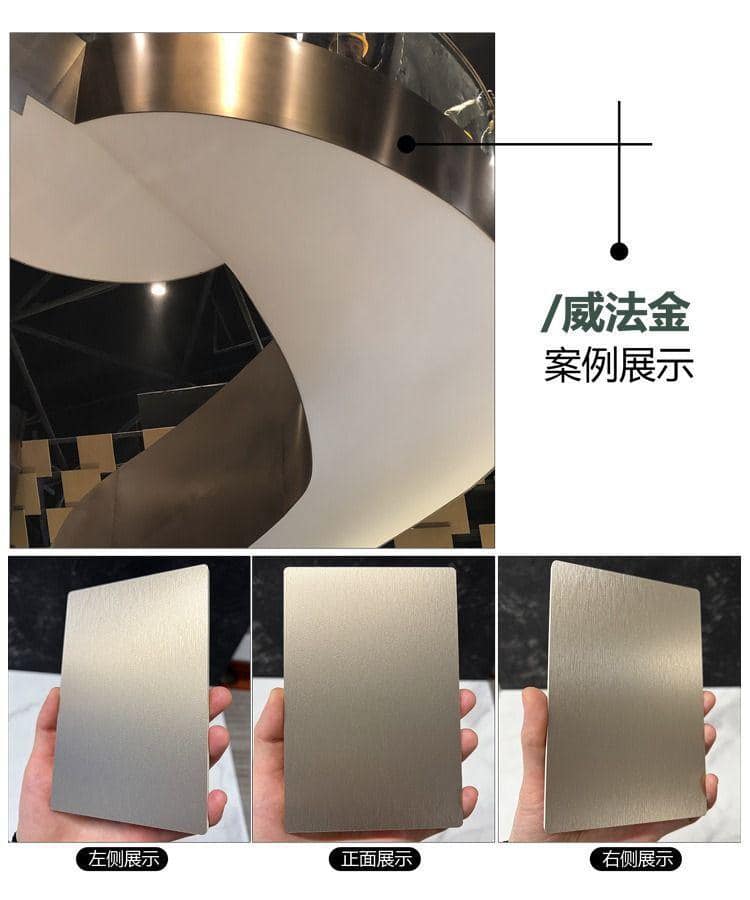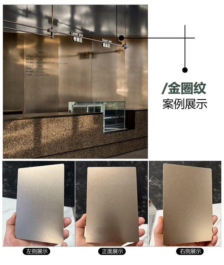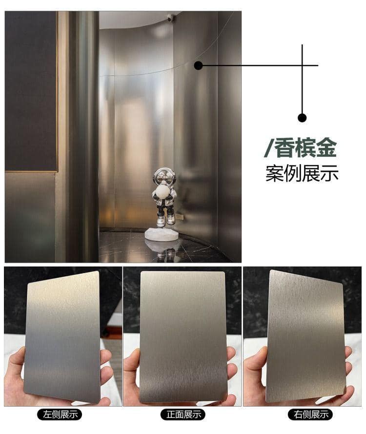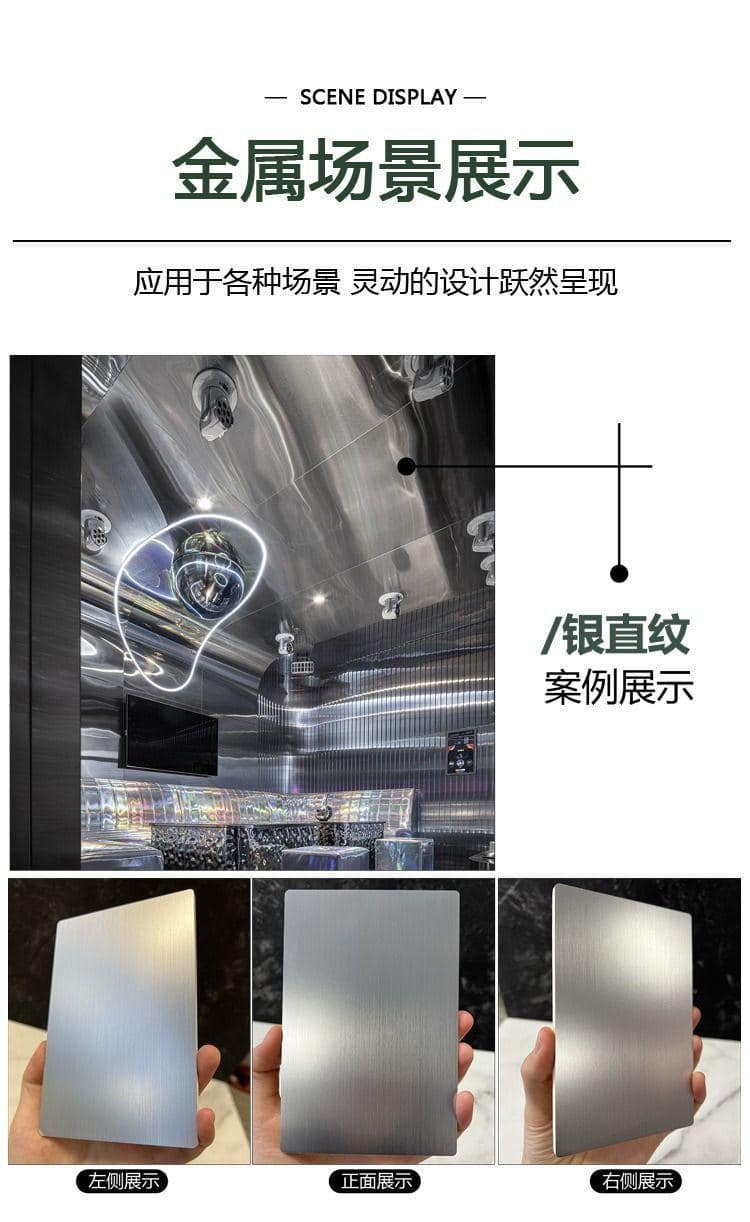 不銹鋼飾面板:不銹鋼飾面板以其卓越的防腐蝕性能和高強度廣泛應(yīng)用于各種裝修項目。常見的有鏡面不銹鋼、拉絲不銹鋼、蝕刻不銹鋼等。