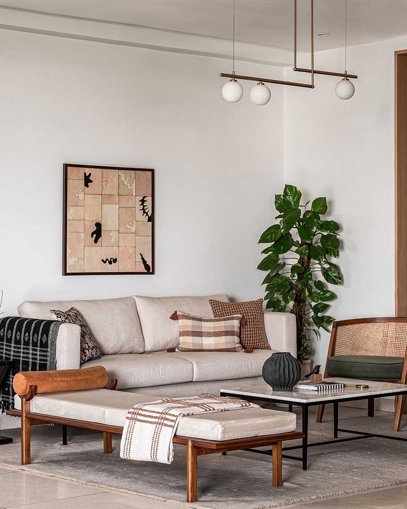 簡約中古風(fēng)以中性色調(diào)為主,如米色、灰色、白色和棕色。這些顏色能夠營造出寧靜、舒適的居住環(huán)境,同時也能突出家具和裝飾品的質(zhì)感。