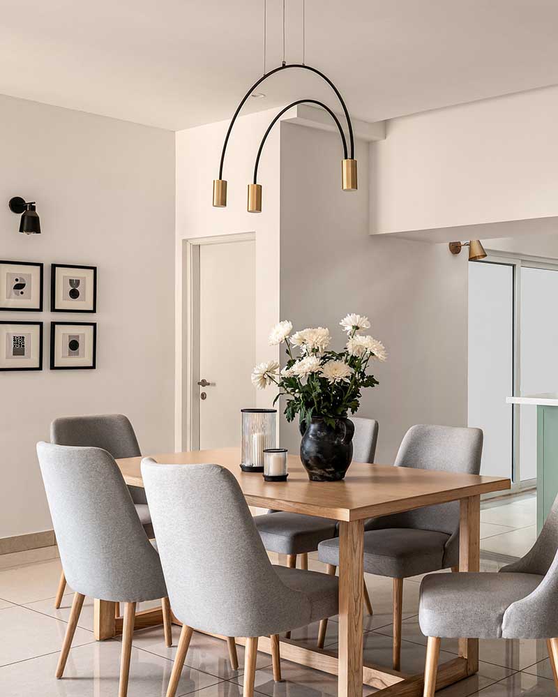 簡約中古風(fēng)家裝強調(diào)干凈、流暢的線條設(shè)計,以簡潔的形式展示出空間的美感,避免過多的裝飾和復(fù)雜的細節(jié)。