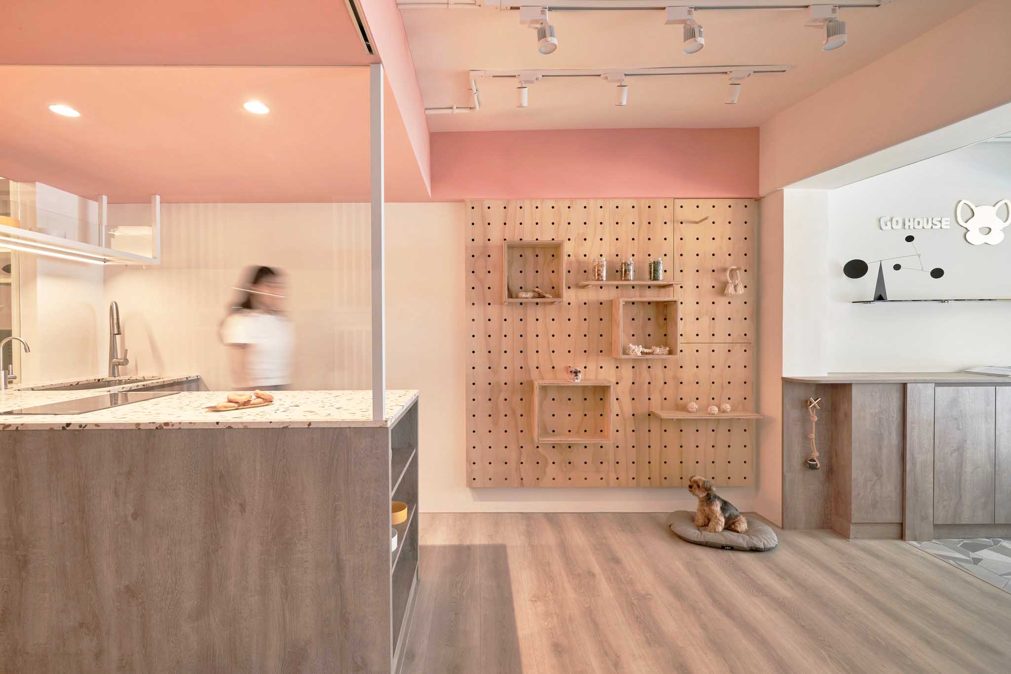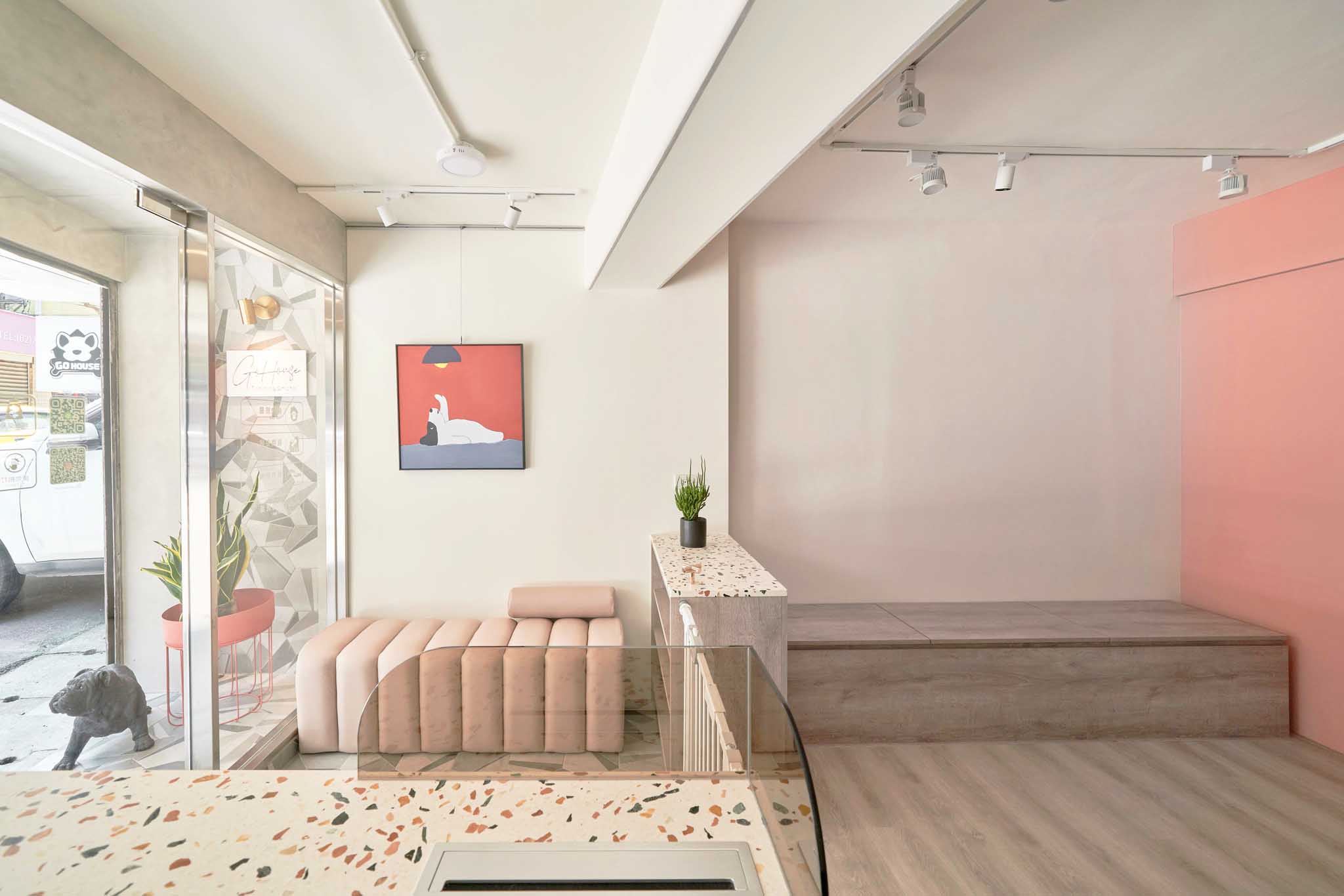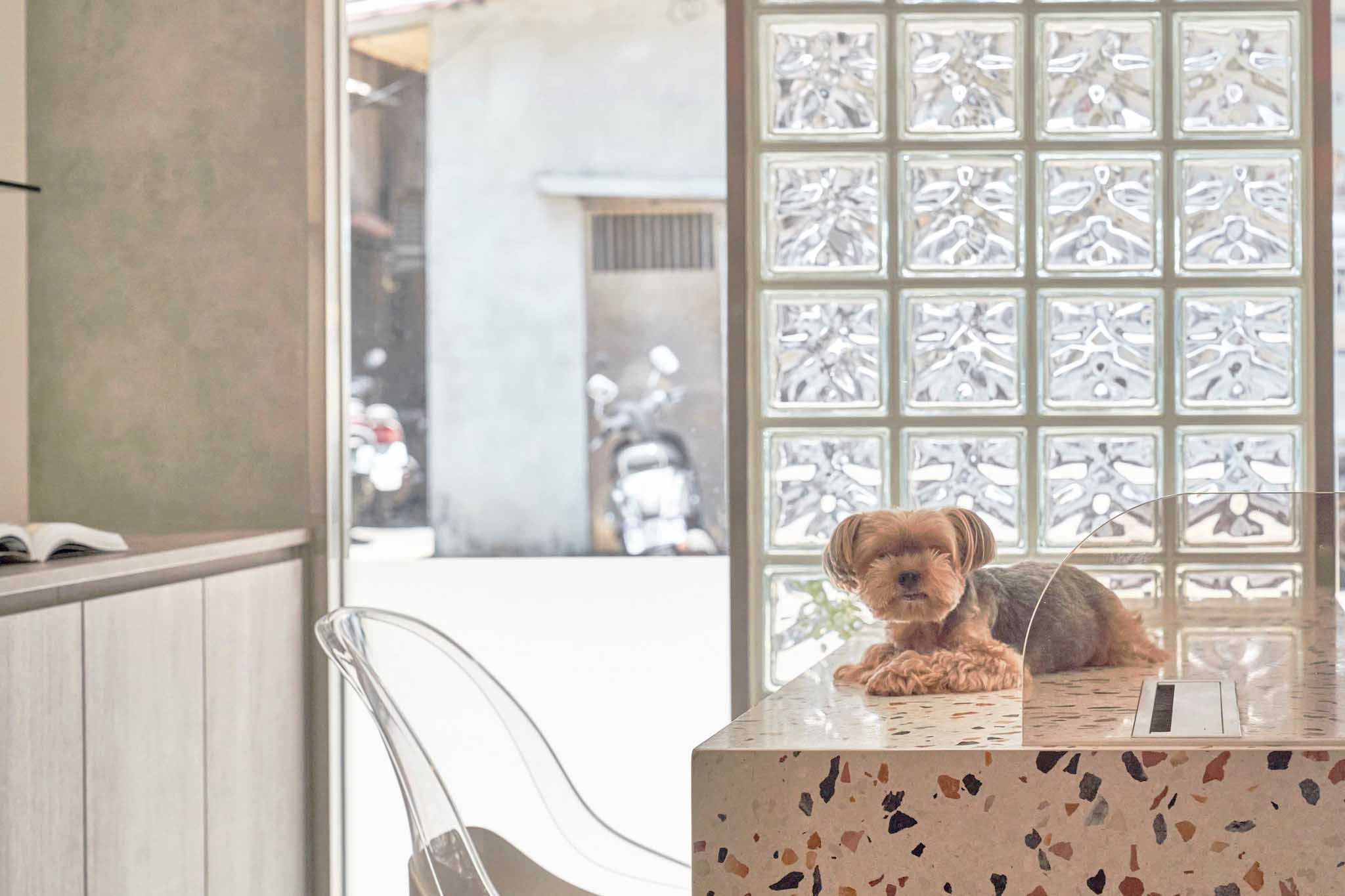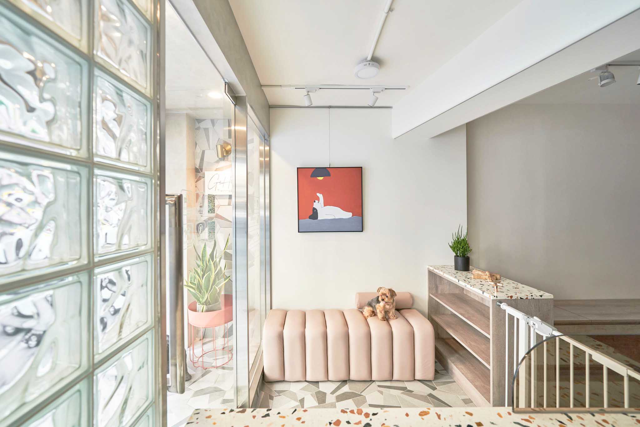 這次的翻新工程真的讓我們大開眼界。店主是一對從寵物學(xué)校畢業(yè)的專業(yè)寵物訓(xùn)練師和美容師。為了讓狗狗在店內(nèi)感到像在家一樣的放松,他們和設(shè)計師精心規(guī)劃了每一個細節(jié)。