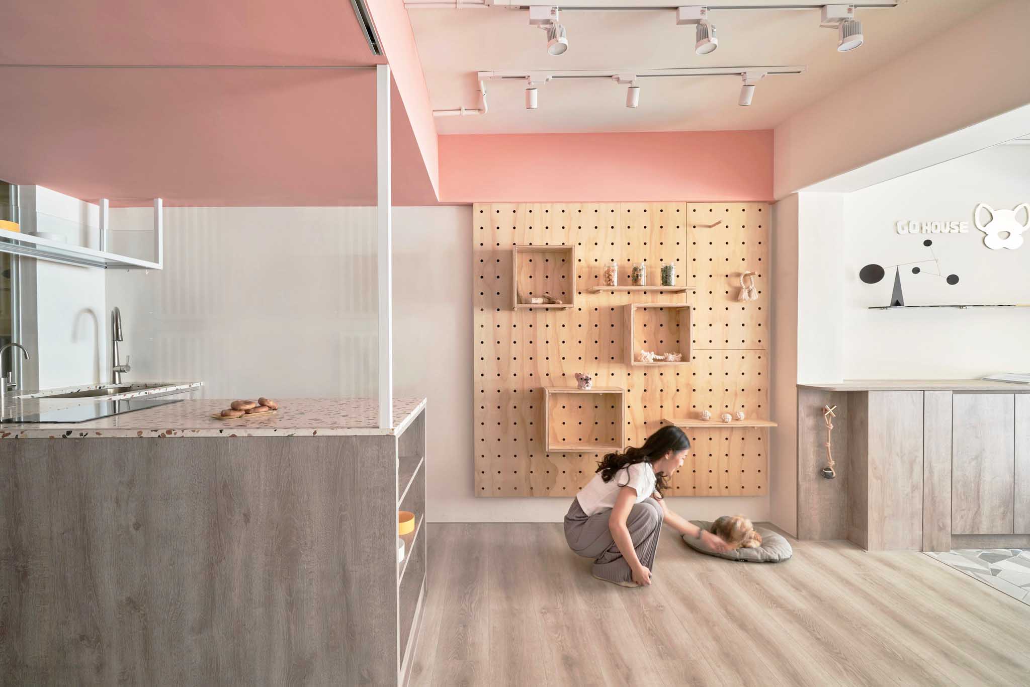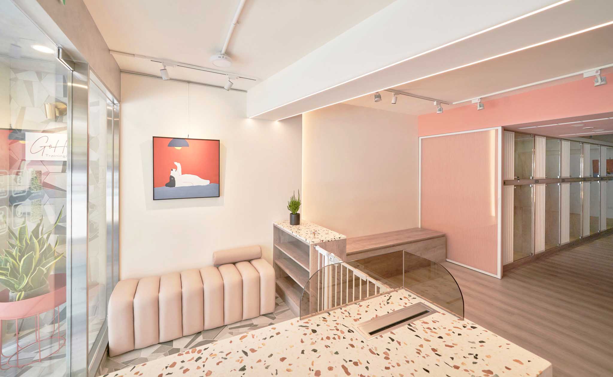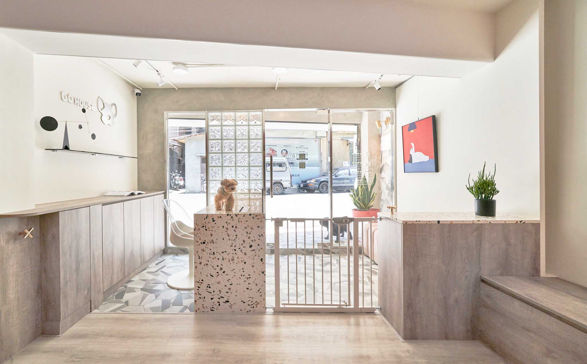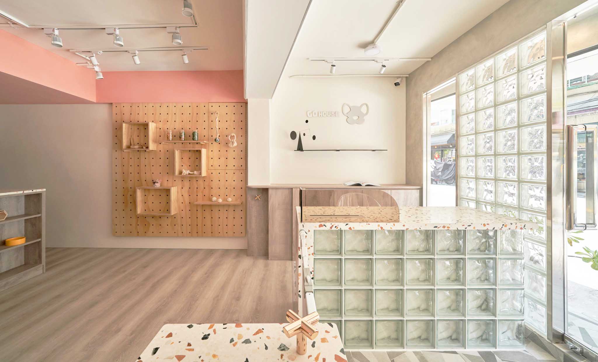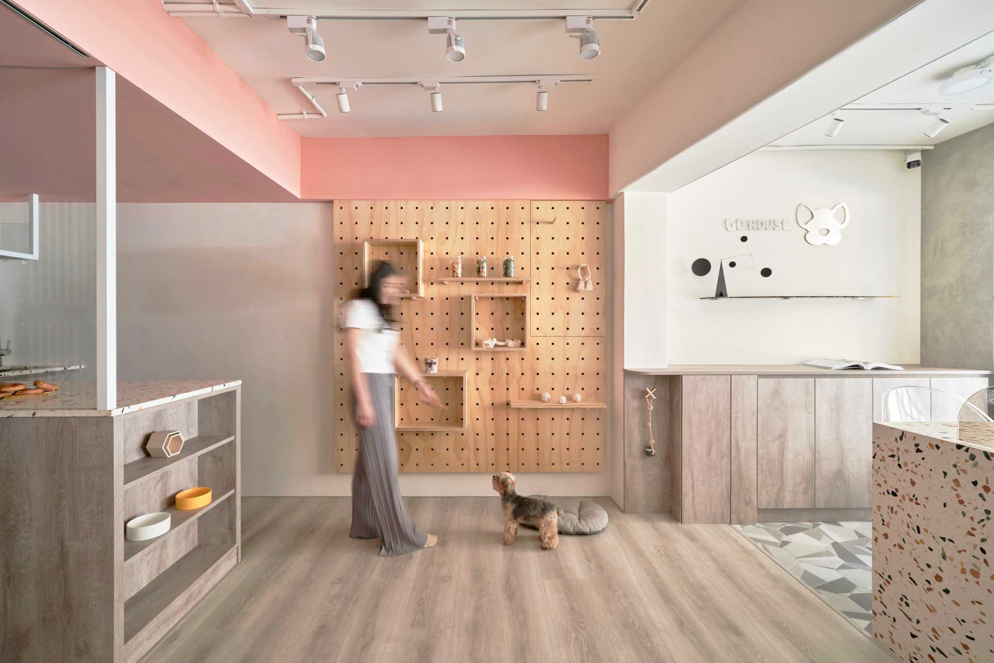 這次的翻新工程真的讓我們大開眼界。店主是一對從寵物學(xué)校畢業(yè)的專業(yè)寵物訓(xùn)練師和美容師。為了讓狗狗在店內(nèi)感到像在家一樣的放松,他們和設(shè)計師精心規(guī)劃了每一個細節(jié)。
