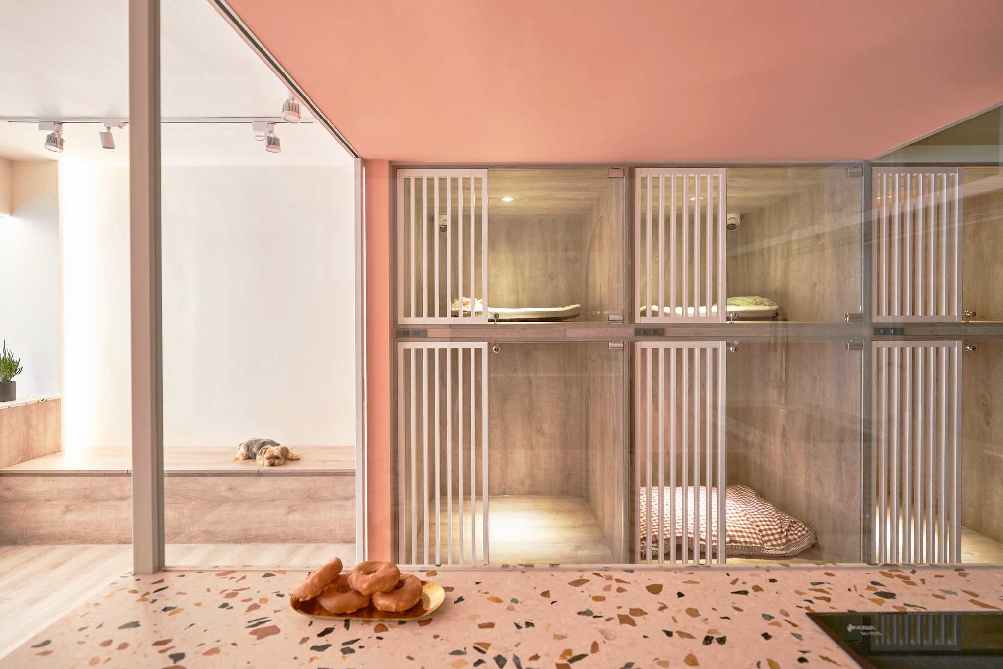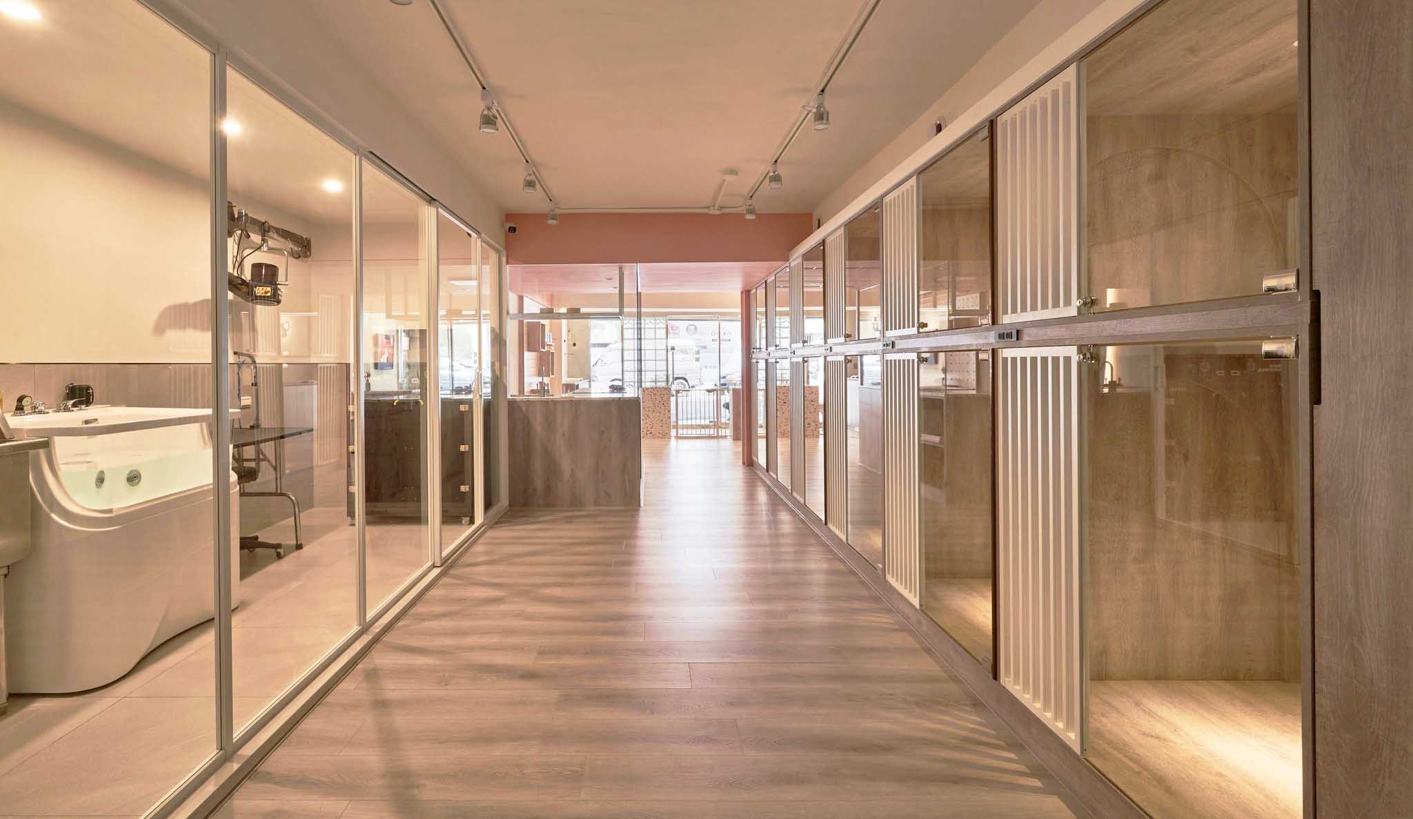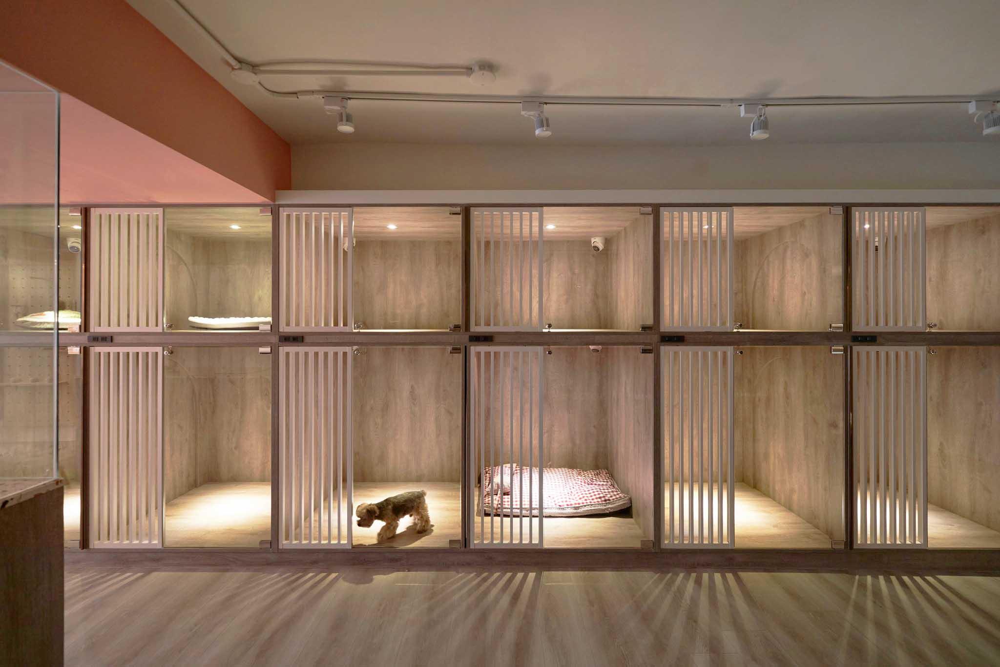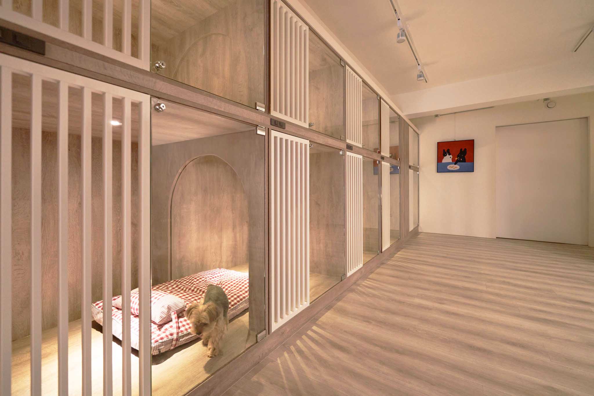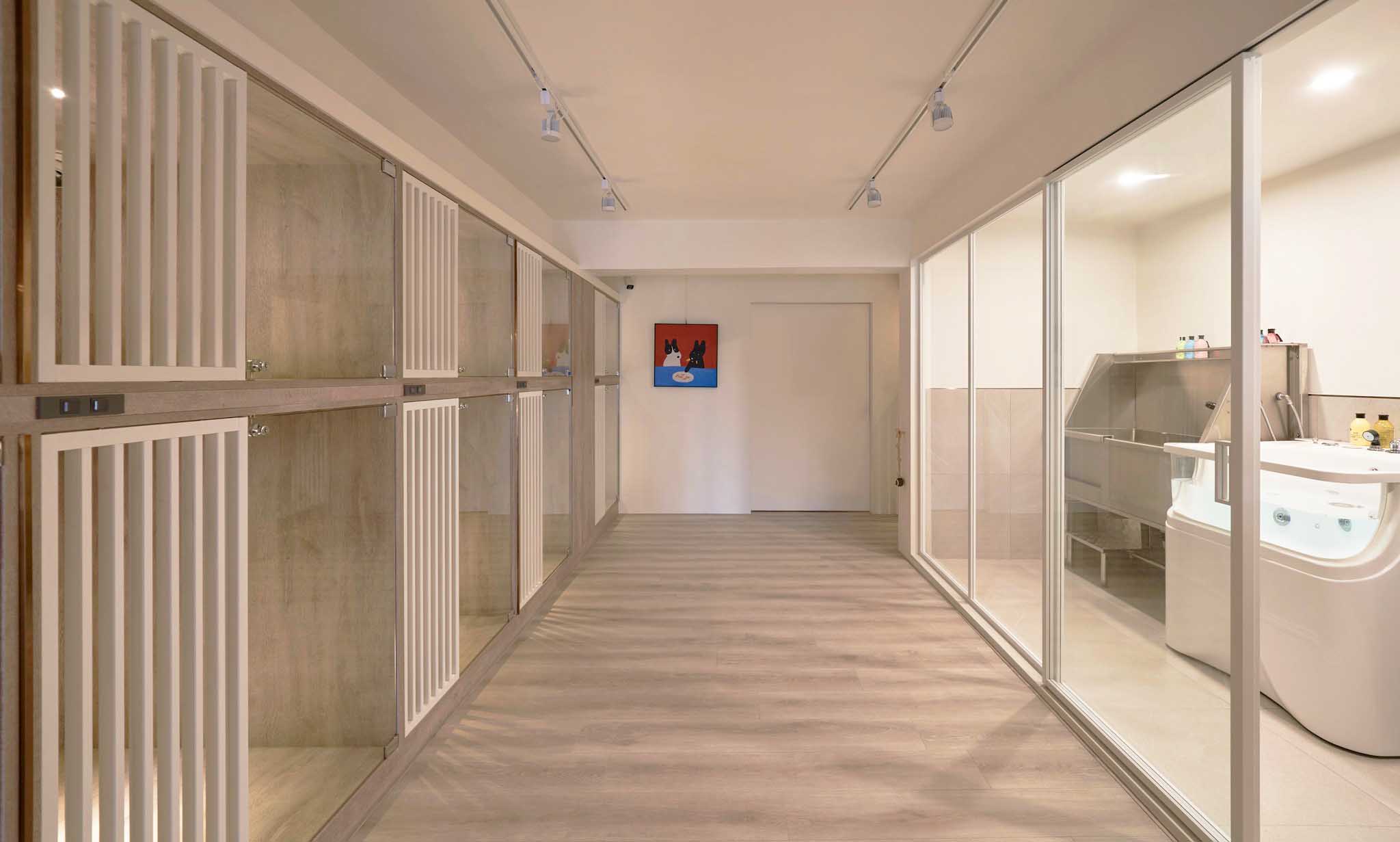 寵物住宿區(qū)和美容區(qū)根據(jù)寵物體型或相處情況靈活區(qū)隔或打通,提供寬敞的公共活動空間。