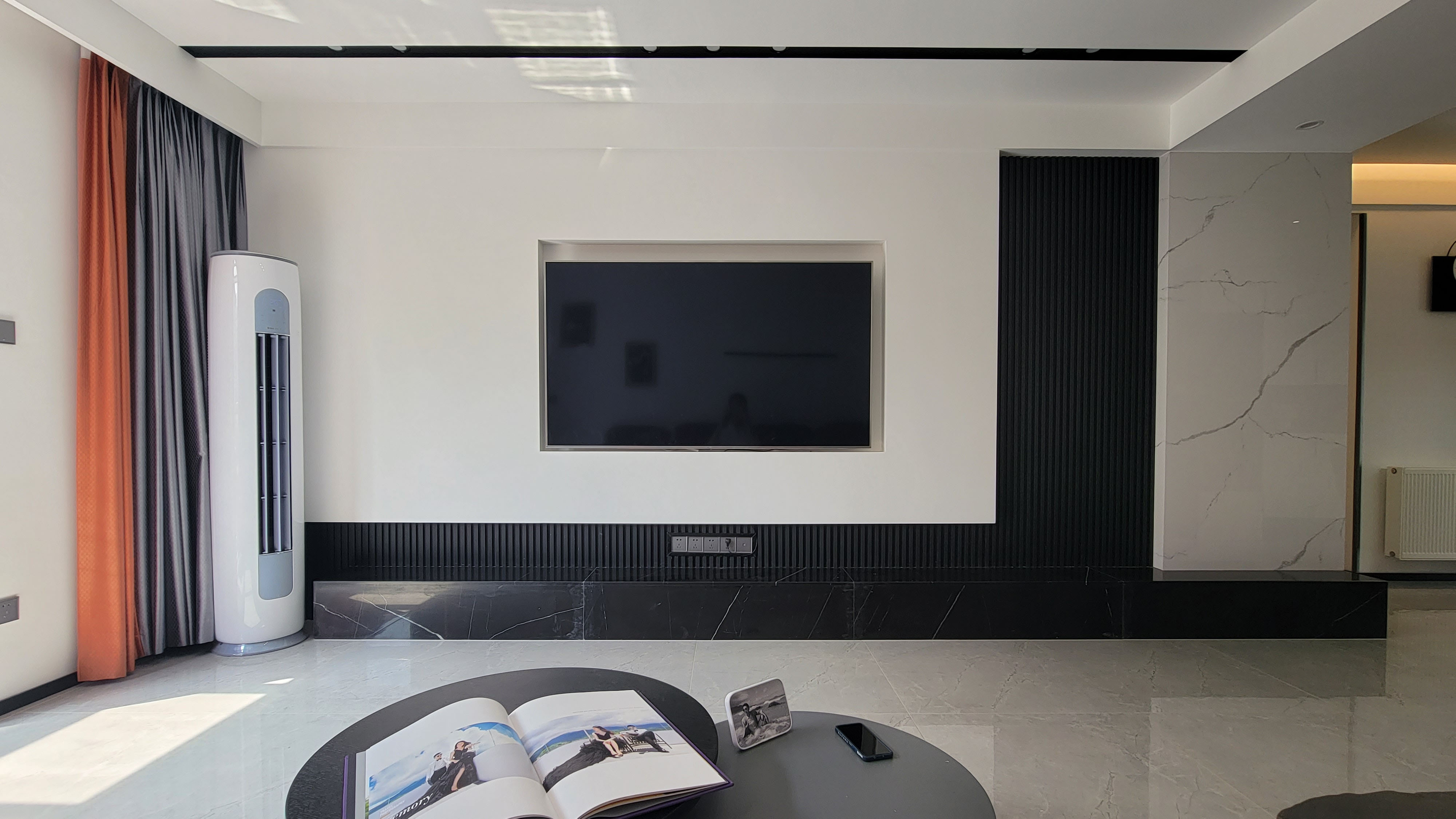 客廳的設(shè)計以現(xiàn)代主義風(fēng)格為基礎(chǔ),巧妙地運用了高低錯落的小圓形茶幾,打破了傳統(tǒng)的沉悶感。電視背景墻的黑白配色搭配石紋理裝飾,使得空間既具有視覺沖擊力,又不失優(yōu)雅和格調(diào)。隔板設(shè)計巧妙地劃分了空間,同時又不會讓整個客廳顯得擁擠。超大的落地窗讓陽光毫不吝嗇地灑進室內(nèi),灰色的地磚與自然光的交織,增添了溫暖的氛圍。